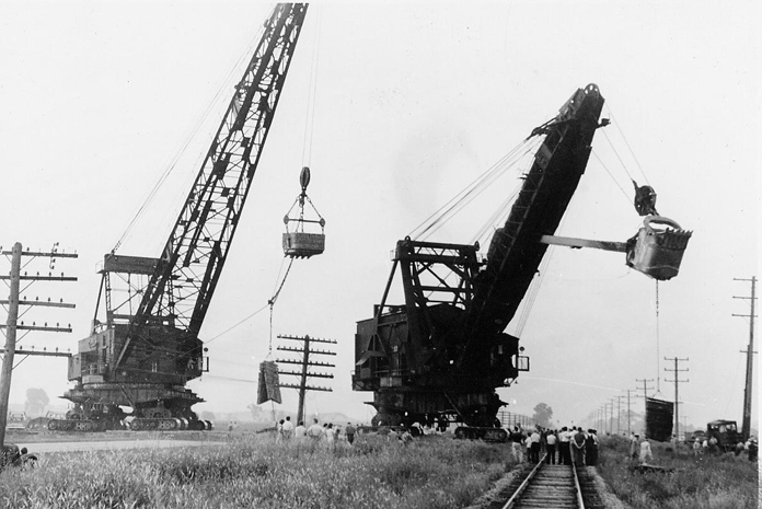 A particular attraction was the huge dragline cranes that dug the pits to the level of the coal. Mammoth is the only word for these electrically driven machines that would rhythmically swing back and forth, scooping huge amounts of dirt, then depositing it on the other side of the pit.