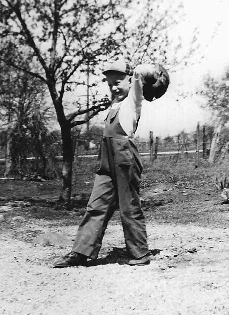 One time, my mother made the timing mistake of walking out of the back door on her way to the outhouse at the same time I fired the ball straight (or so I thought) into the air above me. Had I intended that the ball would land directly on the top of her head, I would’ve been the next Whitey Ford or Allie Reynolds. My precision, if not velocity, would have been that great. Watching the downward arc of the ball and instantaneously calculating the speed and direction of her steps, I clearly saw that the ball had a good chance of landing on the top of her head. And it did.
