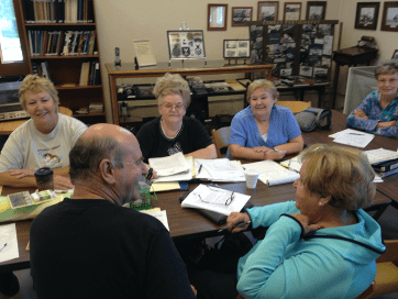 - Braidwood Area Historical Society: Always a treat to view pictures and visit with Dee, George, and the other volunteers. Pictures abound with time-stamped memories. Right: BAHS Board meeting.