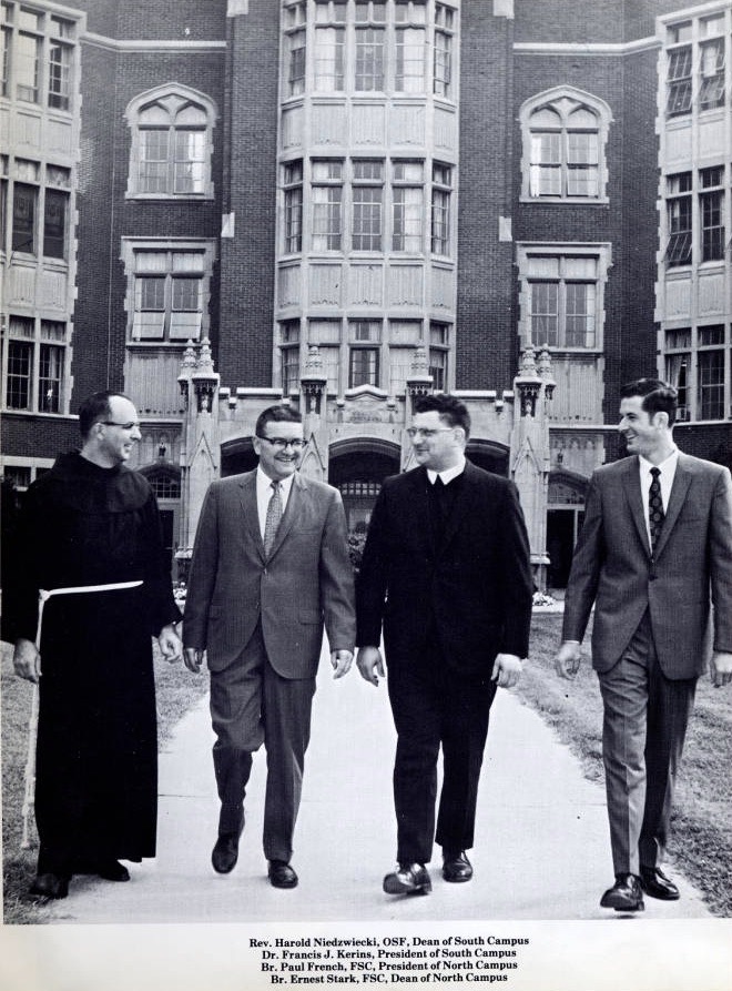 In the beginning, it made complete sense that Lewis and St. Francis were likely candidates for joining forces. Since the Christian Brothers had assumed their leadership at Lewis in 1960, the College was remade into an all-male institution. Previously, Lewis had been constituted as a “diocesan” Catholic college located in Lockport, Illinois serving men and women. The College of St. Francis, located 6 miles to the south in Joliet, served women students.