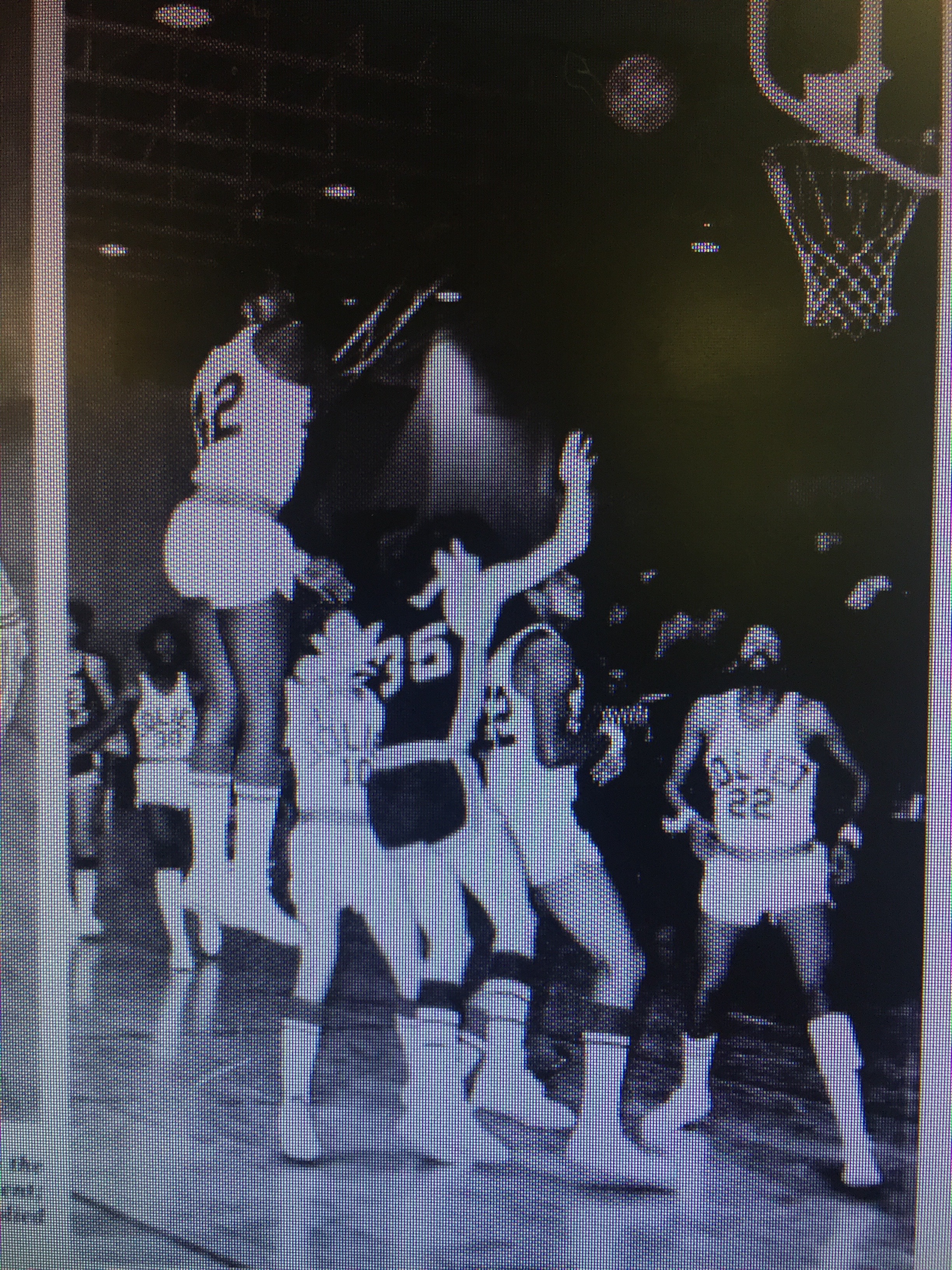 Top left: 1959 Lewis College basketball team; top right:1981 Joliet Junior College team action; bottom left:1962 Chicago Zephyrs NBA; bottom right: Nielsen baseball team and Gordie Gillespie with teammates Gordie Kendall and Bob Thayer.